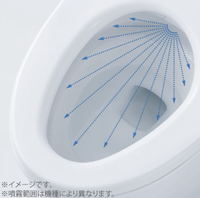 使用前に、便器表面にミストを自動で吹きかけます。