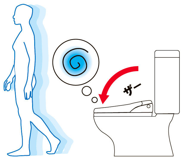 便座から立ち上がると自動で便フタが閉まり、便器洗浄します。