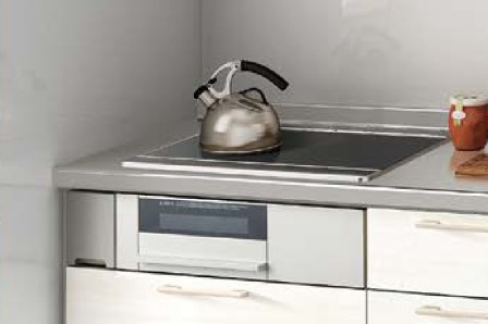 中央奥には、プレートの下から電気熱で温めるラジエントを採用。